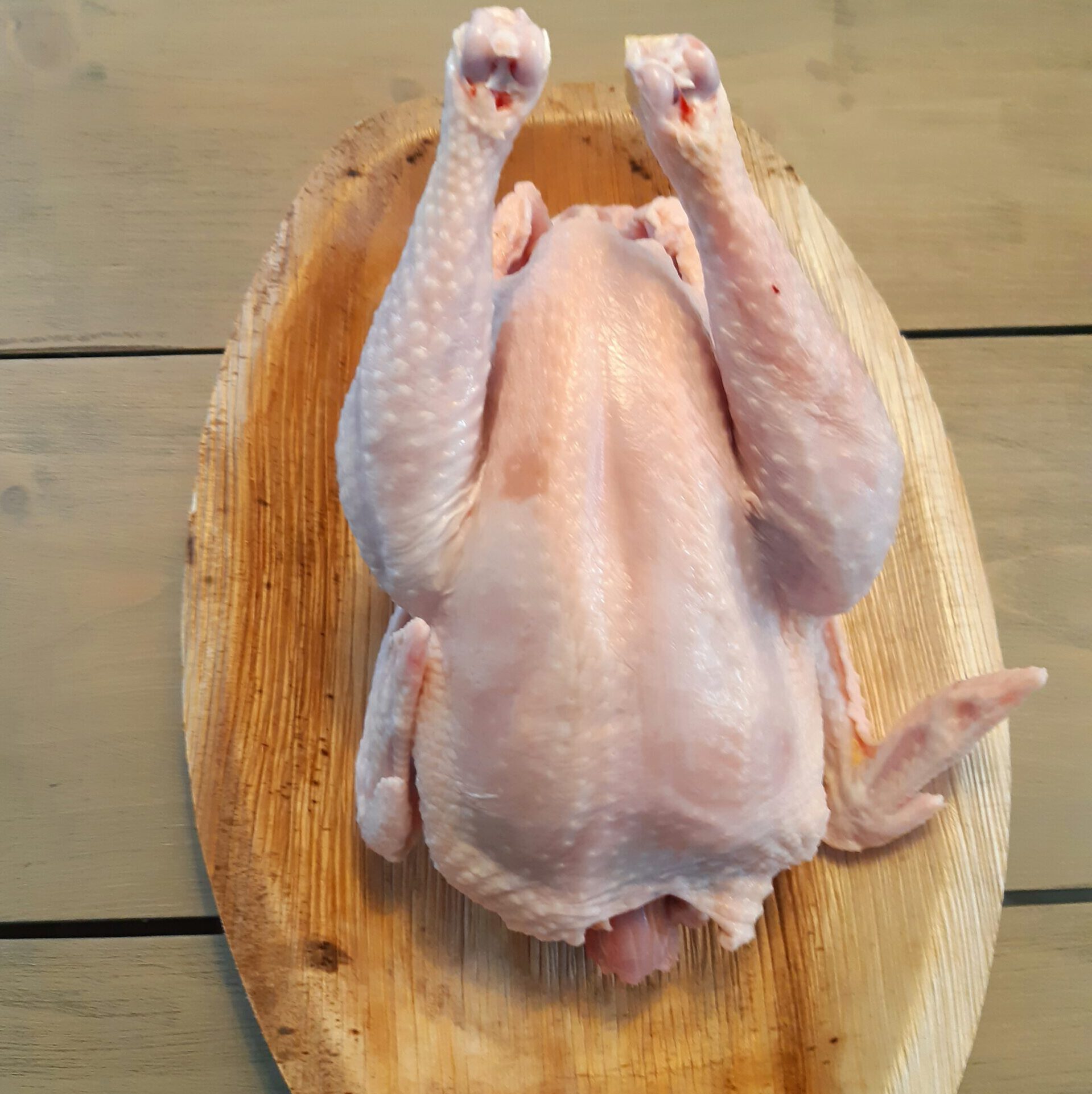 Als u bij ons besteld, krijgt u een hele kip. Deze kippen wegen tussen de 1.5 en 2.5 kg per stuk.